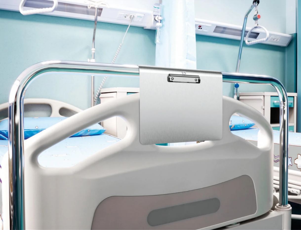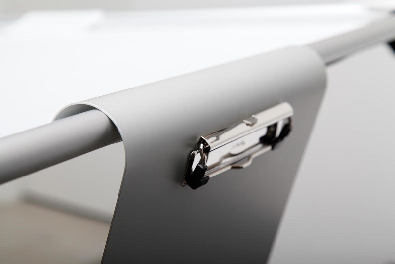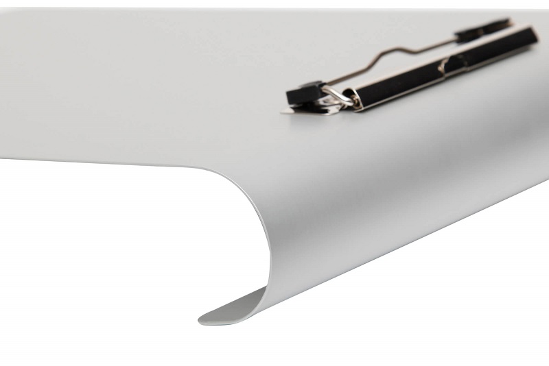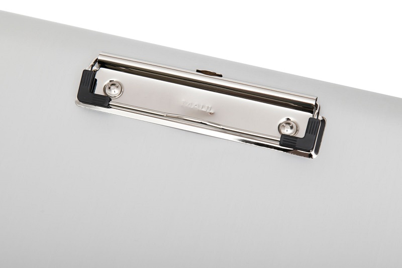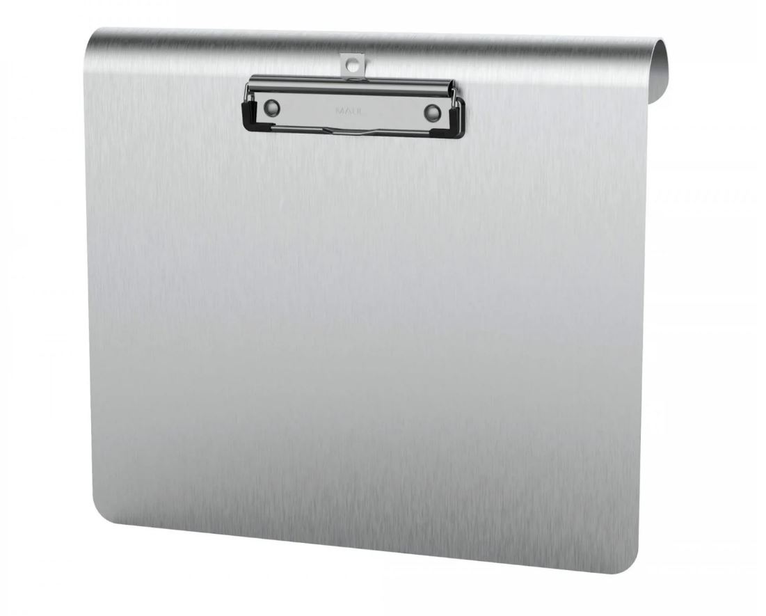 Silver MAULmedic landscape clipboards are made of durable anodised aluminum, which can be recycled. The top clipboard edge is bent backwards and has a function handle also. Metal clipboards with clip are perfect for using as information cards for hospital beds.