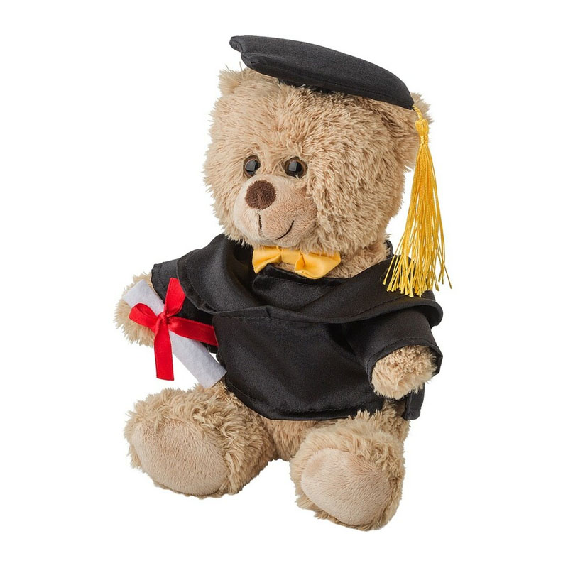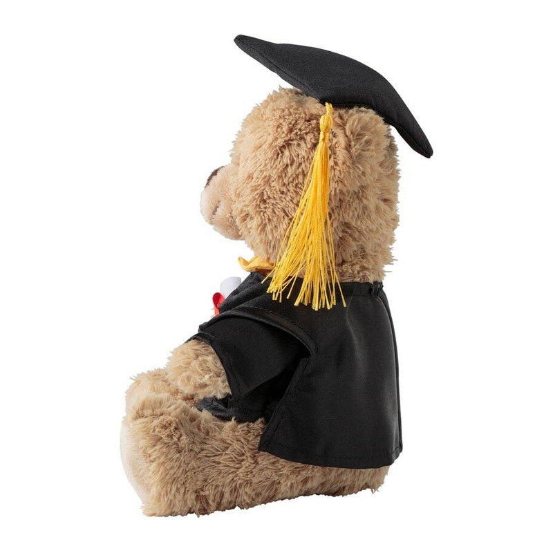 • Plush bear in a black student/graduation gown and a hat to customize
