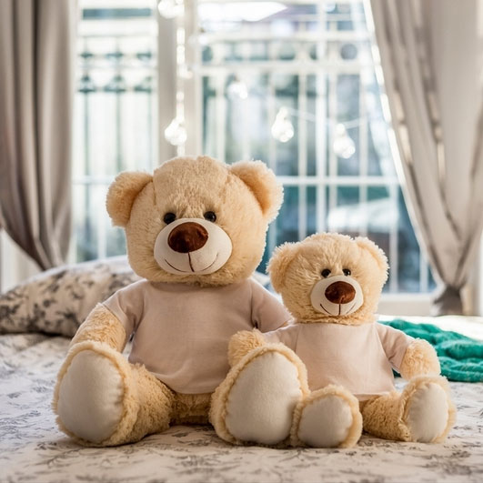 • The cuddly toy has a white polyester blouse - it is polyester t-shirt, so it is ideal for sublimation marking