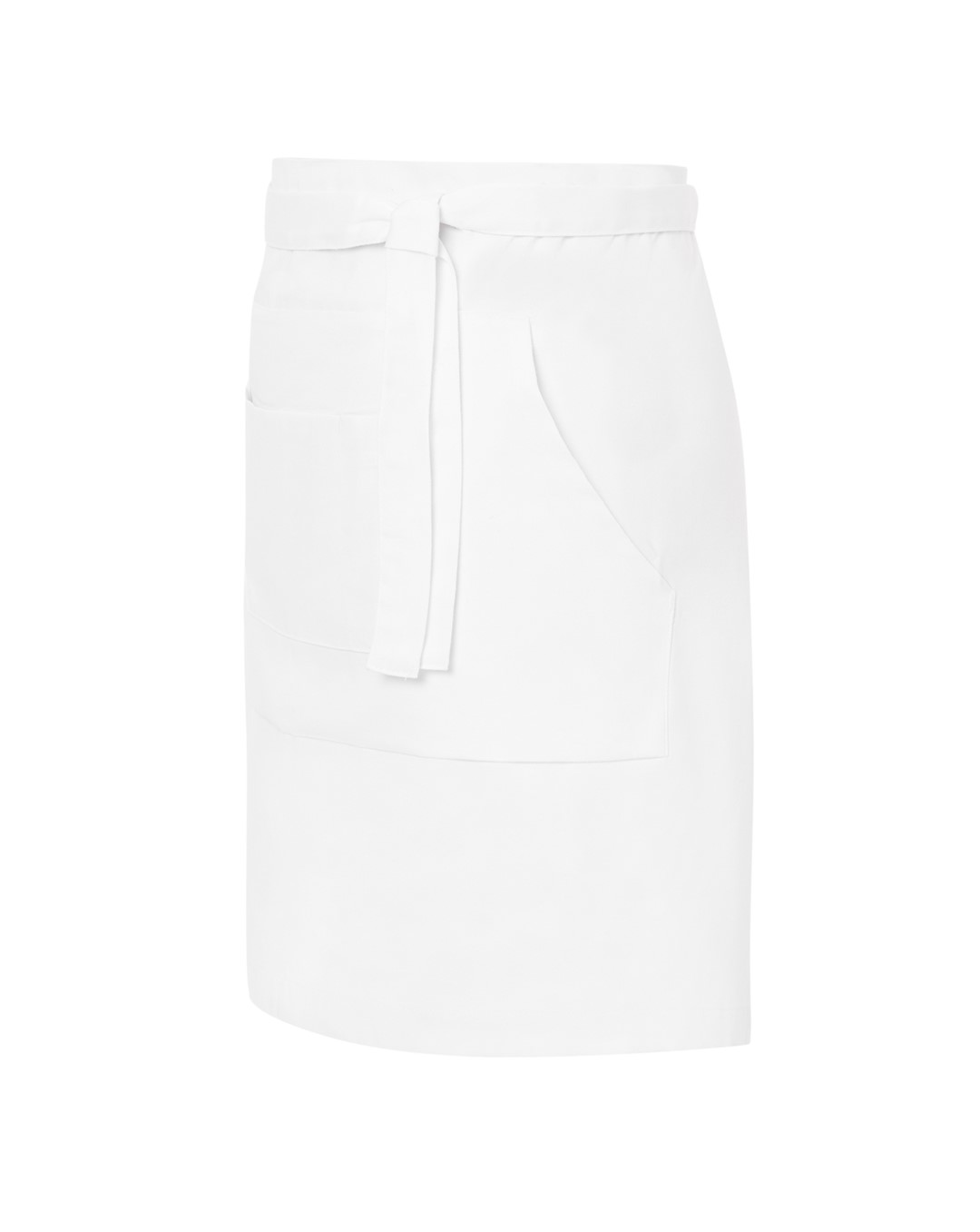 • Bistro, longish apron for waiters has a practical front pocket with two openings and strings to tie at the waist