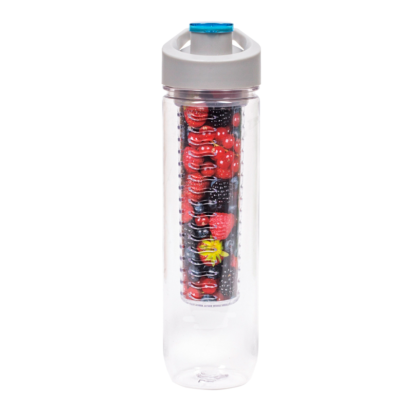 • The transparent plastic bottle (BPA FREE) is leak-proof, perfect for cold drinks with ice or water with fresh fruit