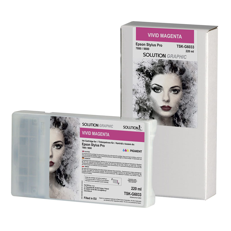 Solution Graphic is new type of pigment ink, dedicated for Epson Stylus Pro oraz SureColor printers. Solution Graphic inks has a wide colour gammut, excellent color rendition and enhanced black density. This pigmented ink is extremely long-term stable.