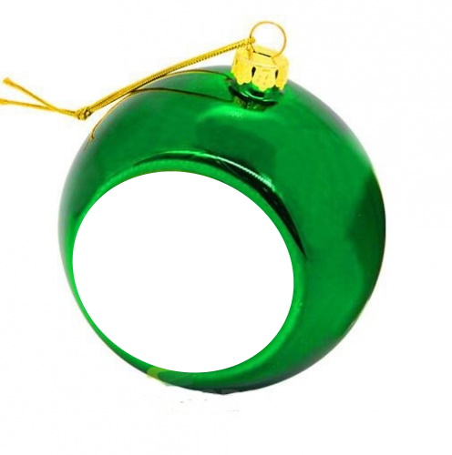 Green shimmering bauble for sublimation printing. Diameter of the baubles: 60 mm, diameter of print area: 34mm.