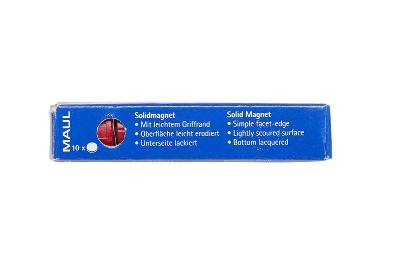 Round MAUL magnets in red colours: with a diameter of 15 mm and a thickness of 7 mm