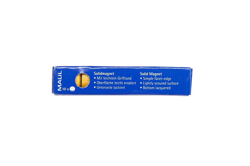 Round MAUL magnets in yellow colours: with a diameter of 15 mm and a thickness of 7 mm