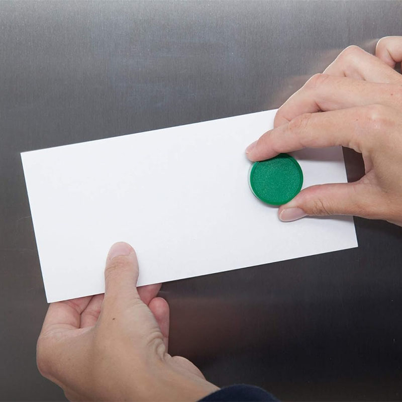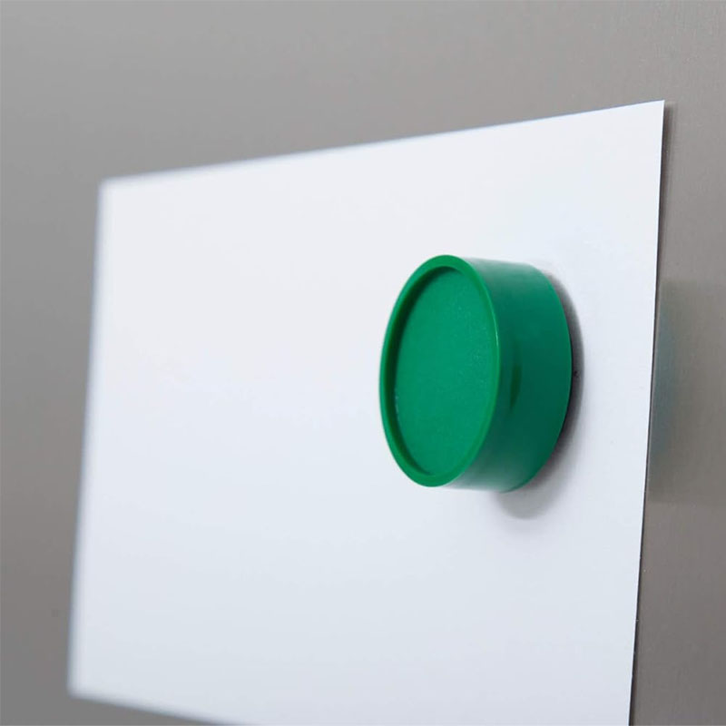 Magnets and magnetic accessories are characterized by great versatility. The most popular are ordinary office magnets. You can use them to stick drawings, notes and posters to any magnetic surfaces: dry erase and chalk boards, refrigerators and other metal surfaces. Ferrite or ceramic classic magnets, with a standard attraction force are usually used in office conditions. Colorful magnets are useful not only in work office but also in school and home.