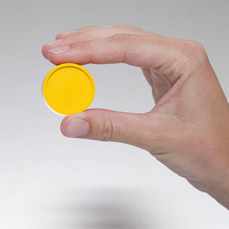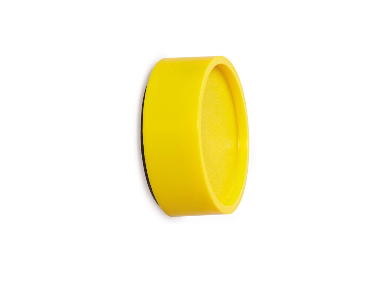 Round, sturdy, magnets in yellow colour with a diameter of 30 mm and a thickness of 8.4 mm