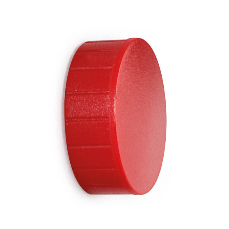 Round MAUL magnets in red colour: with a diameter of 38 mm and a thickness of 12.5 mm