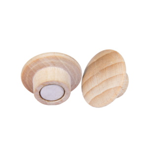 - Wooden eco-magnets in a natural color are comfortable to use: the convex, mushroom-shaped surface makes it easier to grip