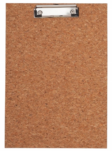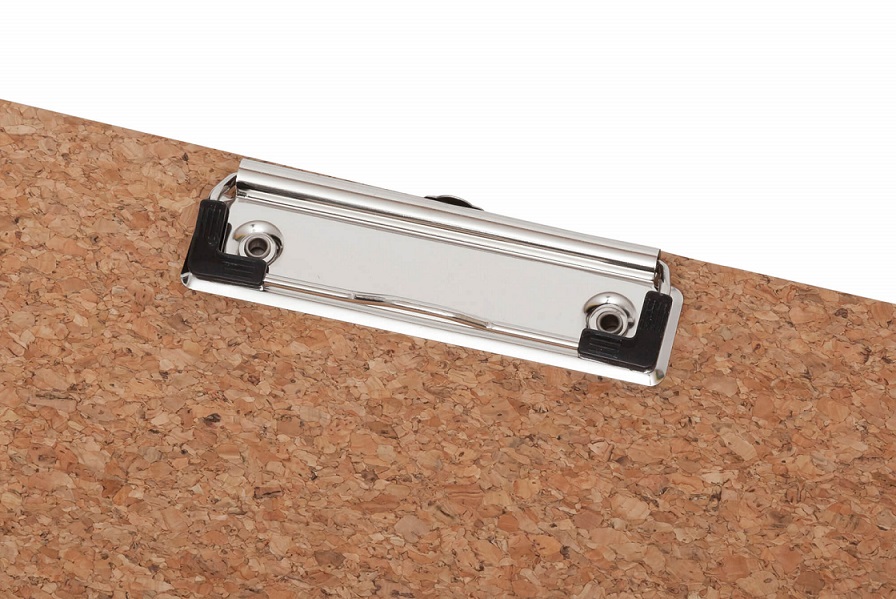 - Stable design clipboard made of untreated cork with nostalgic clip