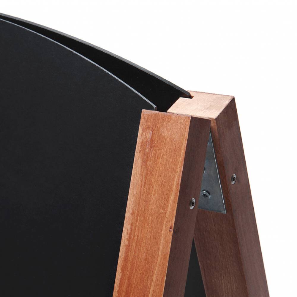 - Double sided pavement sign consists of two boards connected together by a wooden frame and attached to wooden legs (shape of the letter A)