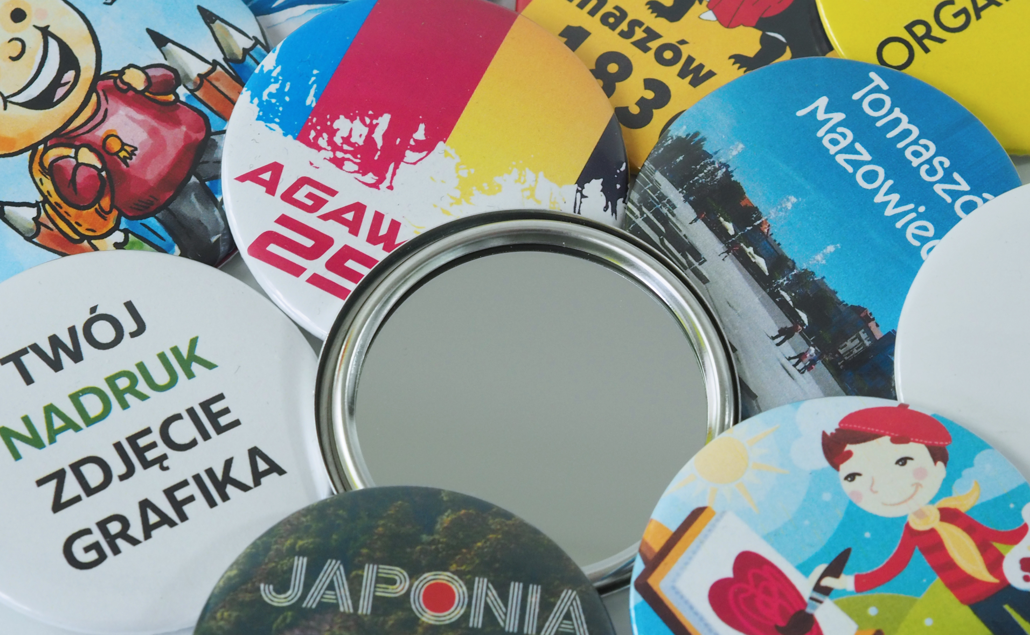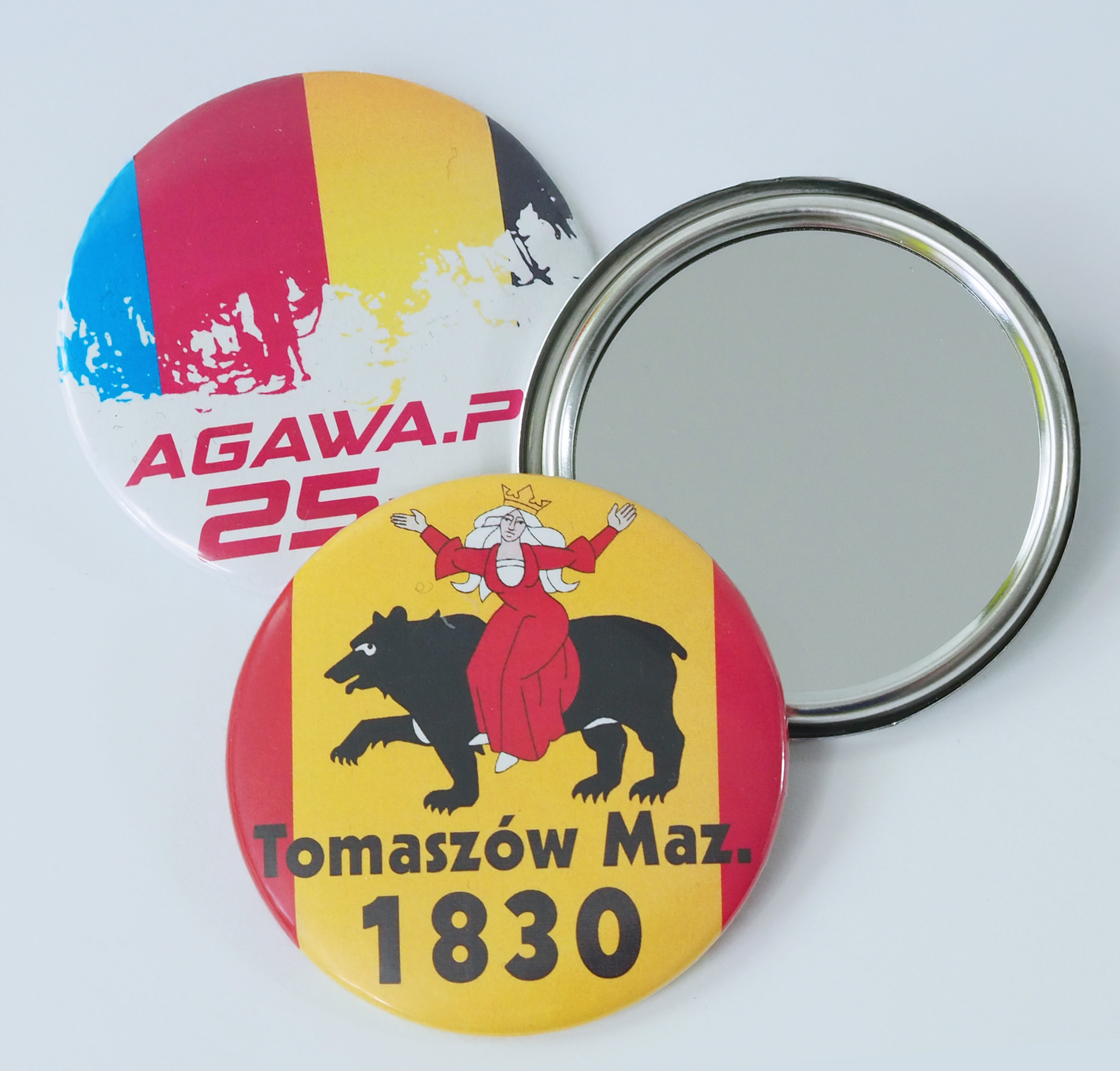 Mirror badges are very popular ad gadget and nice free gift. Button has looking-glass on one side and badge stamp on other side. Badges are used by companies for advertising campaign, build a positive image while launching a new product on the market. Mirror badge can be also curious way for souvenir different events (politics congress, student meeting, wedding, sports happenings). Advertising mirror badge makes each women happy, perfect fit for all woman bags and totes.