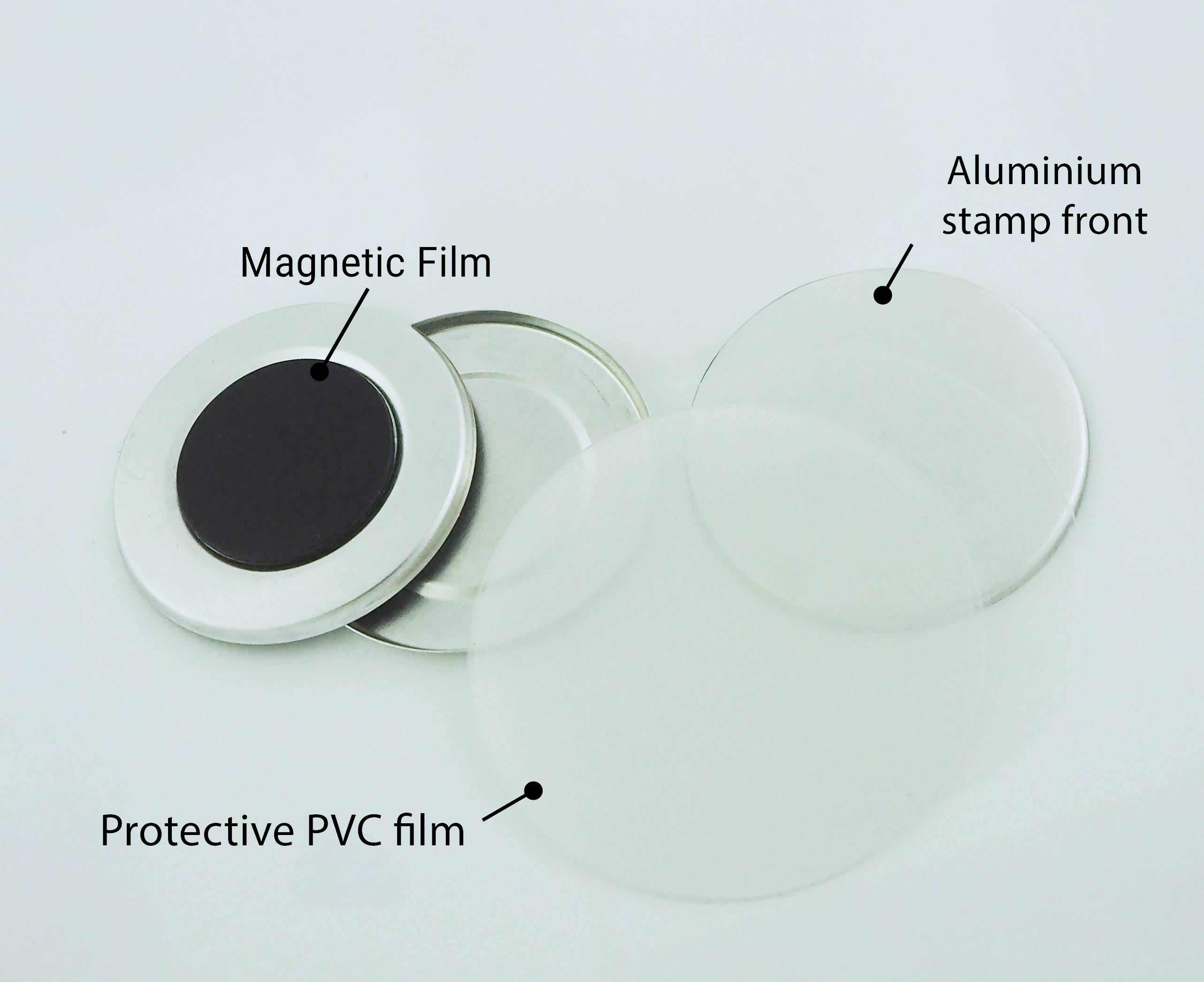 Elements for making pin badges with magnetic foil Średnica 56 mm Kształt round Rodzaj zapięcia folia magnetyczna Stock code