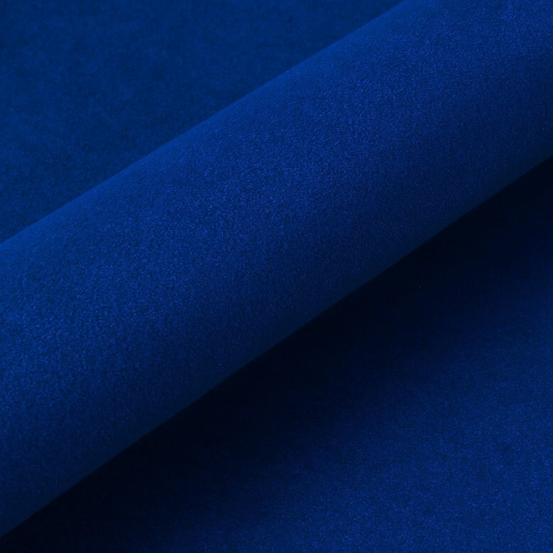 Self-adhesive flock foil for blue-colored cutting plotters. Blue velour film is suitable for various kinds of decorations. The sticky, suede fabric in blue colour is especially dedicated to create decorative packaging, fancy boxes and caskets.