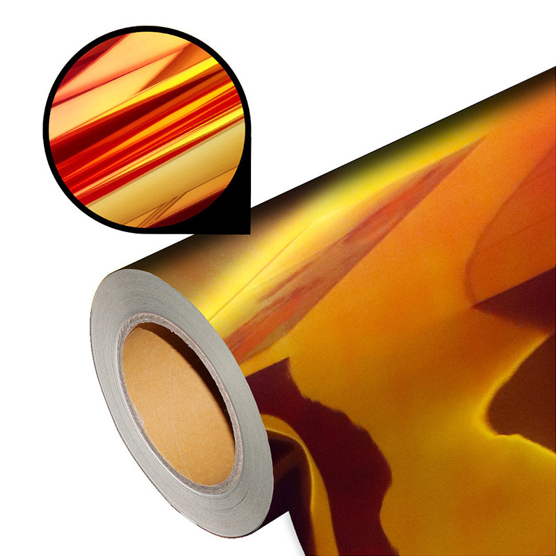 Color-Chanching Chameleon Flex Film in various shades of rose red, orange and gold