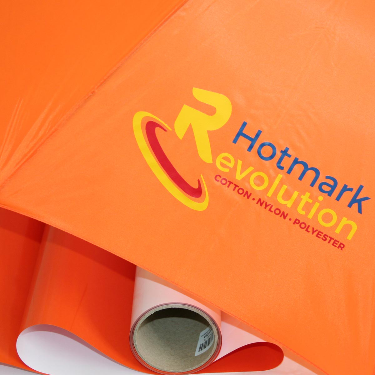 Hotmark Revolution Film is made of a high quality matt polyurethane flex (black), laminated with a thermally activated glue. It is adapted for transfer on different textiles like nylon, cotton, polyester and similar fibers, 70-80 microns.
