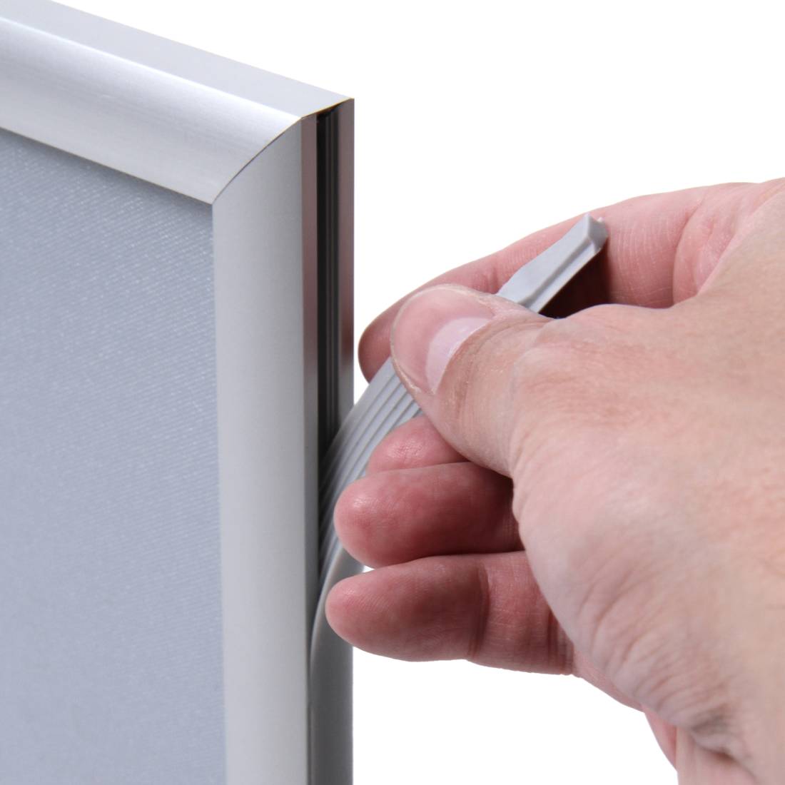 Weather resistant slide in frame with 20mm wide profile. Silver anodised finish. Ideal for double-sided poster presentations on any even surface. Supplied with high quality doublesided adhesive tape to the base.