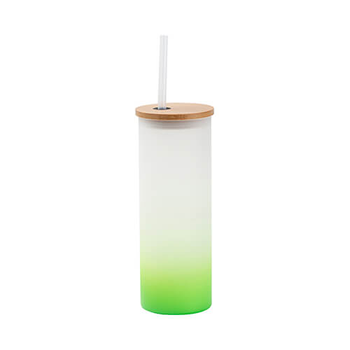 • High glass for sublimation with a bamboo lid with a hole for a straw and a straw