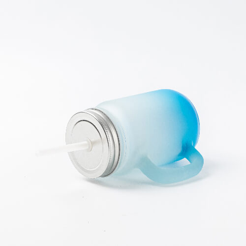 • Glass Mason Jar for sublimation with a large handle, metal screw lid with a hole for a straw and a straw