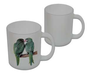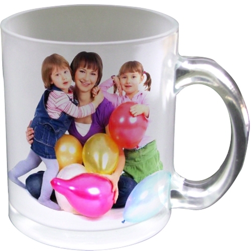 Frosty glass mug coated with a special polyester for sublimation printout.