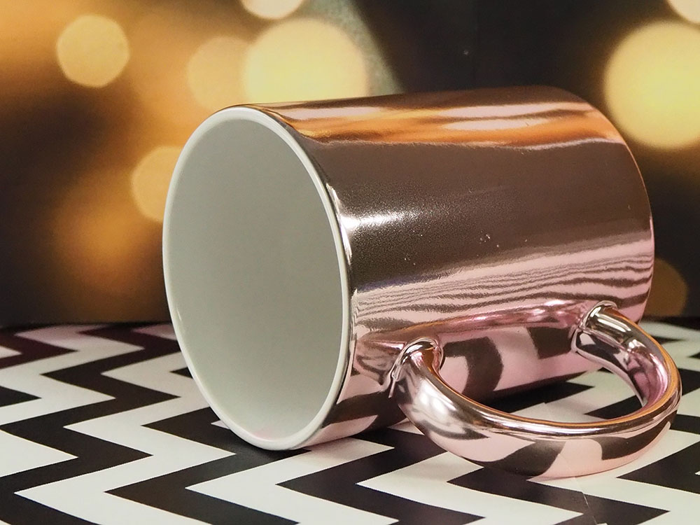 Pink shiny (like plated) ceramic sublimation mug for printing