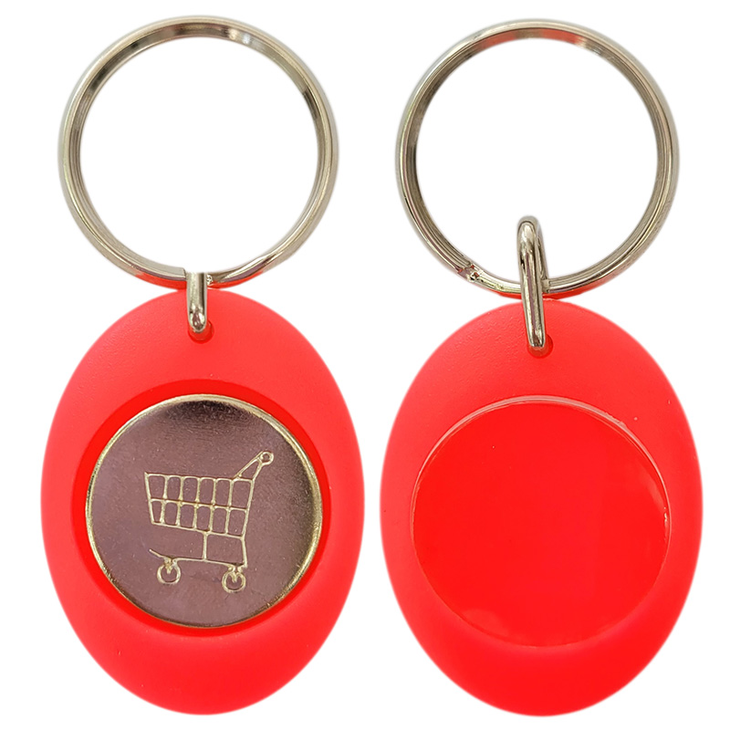 • Shape: oval pill with round photo places on one side and magnet shop token on other side