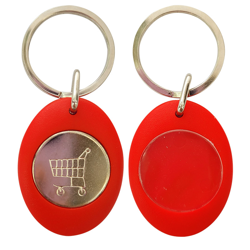 • A pill-shaped body-frame with a window for a photo or graphic on one sides and magnet shop token on other side