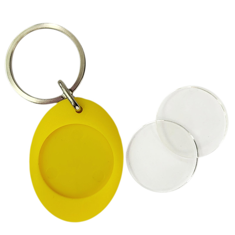• The pill-shaped key rings are available in several colors: black, white, yellow, green, red and blue.