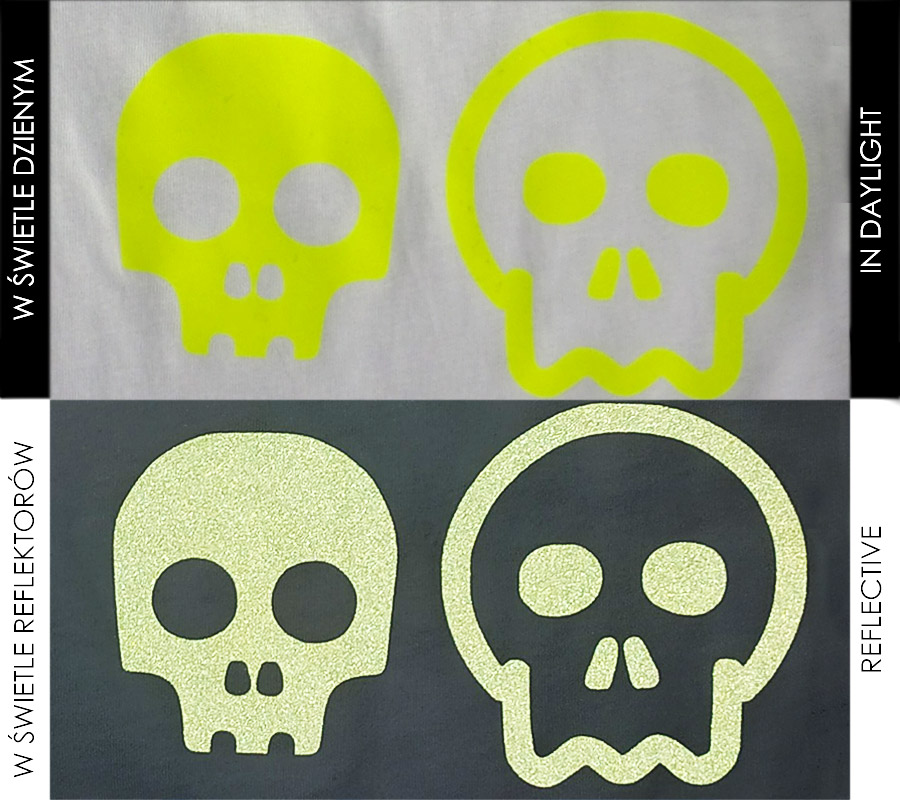 - In the light of the spotlights, colorful reflective foil reflects nicely, like a luminous foil, so we can make fashionable prints on it, e.g. for Halloween, prints of light bulbs, the sun or other objects associated with light