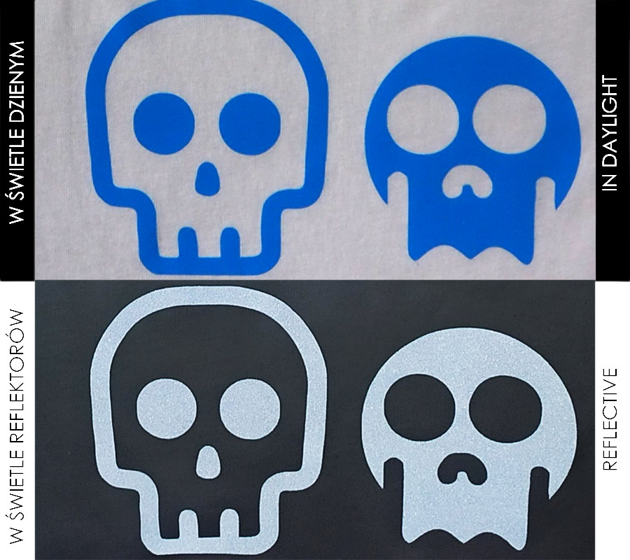- Due to the full coverage, the light-reflecting flex foil can be applied to dark and light fabrics