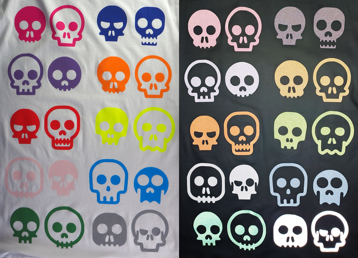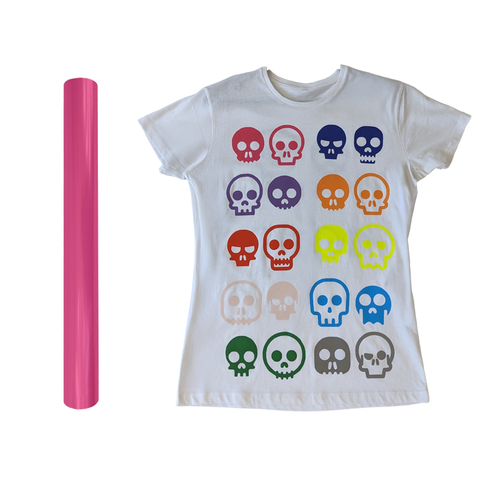 Flex films are a very popular material used in thermal transfer. Flex heat-sealable foils are cut on a cutting plotter and then applied to the selected base using a heat transfer press. Depending on the properties of the film and the final effect, there are a lot of types heat transfer vinyls: from standard, metallic, glitter, lacquered, neon, reflective, structured and others. At your request, we can provide you a flex or flock foil sample - please ask your sales representative for details.