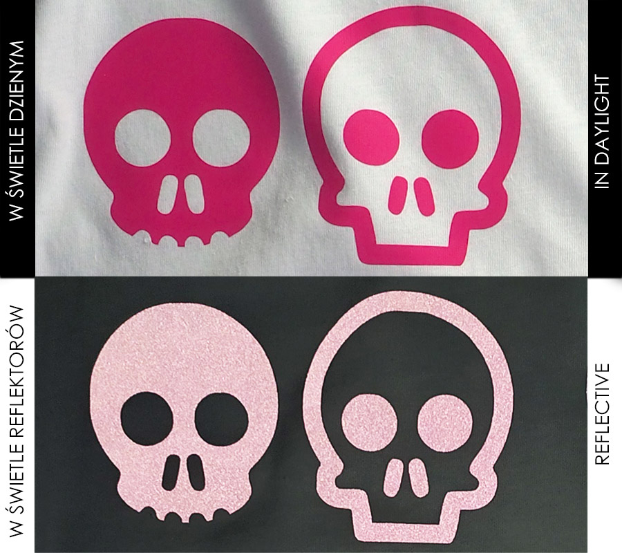 - In the light of the spotlights, colorful reflective foil reflects nicely, like a luminous foil, so we can make fashionable prints on it, e.g. for Halloween, prints of light bulbs, the sun or other objects associated with light