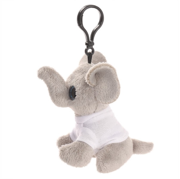 Key ring plushy elephant with white t-shirt for heattransfer. Toy is made of plush and t-shirt is made of polyester.