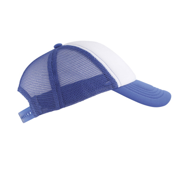 Classic kid's hat with the visor, 5 panels with adjustable clasp at the back. Custom printed cap have four mesh panels.