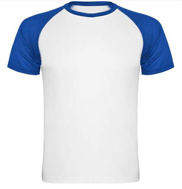 - the sports jersey has short, raglan sleeves in a contrasting color and a round, colored neckline with reinforced covered seams