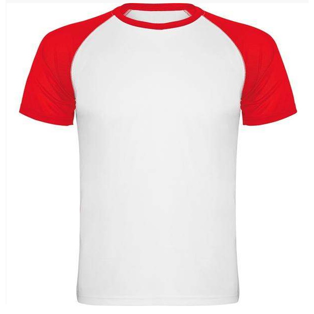 • the sports jersey has short, raglan sleeves in a contrasting color and a round, colored neckline with reinforced covered seams