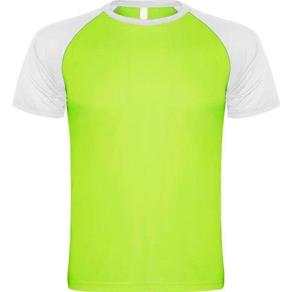 Neon green T-shirt for a boy with a white sleeve, perfect for sports or marketing events.