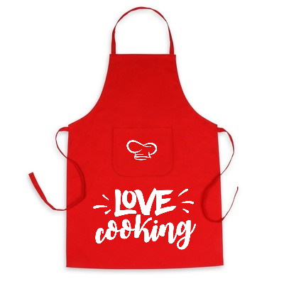• A colorful apron with a pocket and with its own print (text, logo, picture) is an original advertising gadget for places that run culinary workshops or other activities connected with to e.g. food production