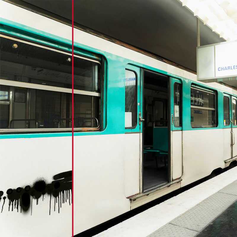 UV Oraguard 372 transparent polyester film. Protects surfaces from dirt and UV rays. Using a suitable cleaning solvent, graffiti can be removed quickly and without damaging the film surface.