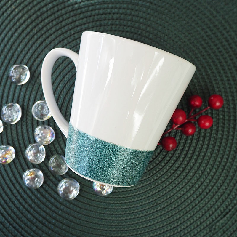 Special glitter stripe on white latte mug draws attention - perfect for advertising and marketing campaigns. Sublimation mugs with glitter stripe can present company's logo and they can be an excellent advertising gadget. Shimmering coloured mug with graphics or funny sentences are sure to brighten everyone's day. Mug isn't a hardy of washing in the dishwasher but due to the high-quality polymer coating, it can be washed well in dishwashers without damaging prints on it even after many washes.