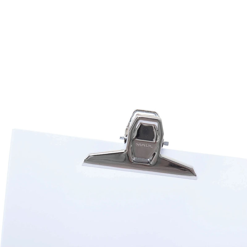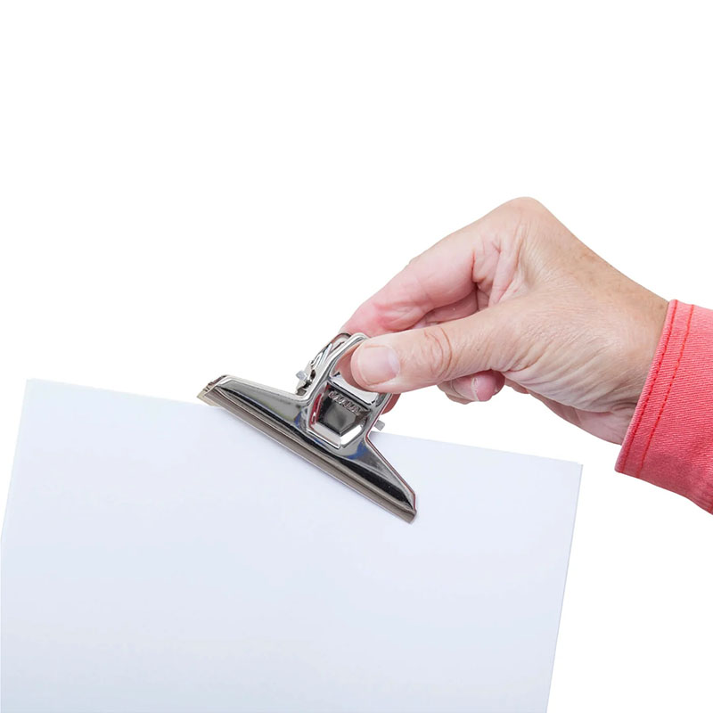 These include universal clipboard mechanisms, also known as archival paper clips (for documents). Small clamps for clipboards with spring mechanisms vary in their design. There are flat clips for attaching to surfaces (e.g., walls or clipboards), which securely hold sheets of paper. Popular options also include "bulldog" clips that bind stacks of notes, files, banknotes, and other documents, which are also useful for sealing an open package or bag to secure its contents. Clamps and office clips make it easy to manage documents, streamlining workflow. A clipboard mechanism ensures a strong attachment of documents to the board, allowing for convenient use outside the office.
