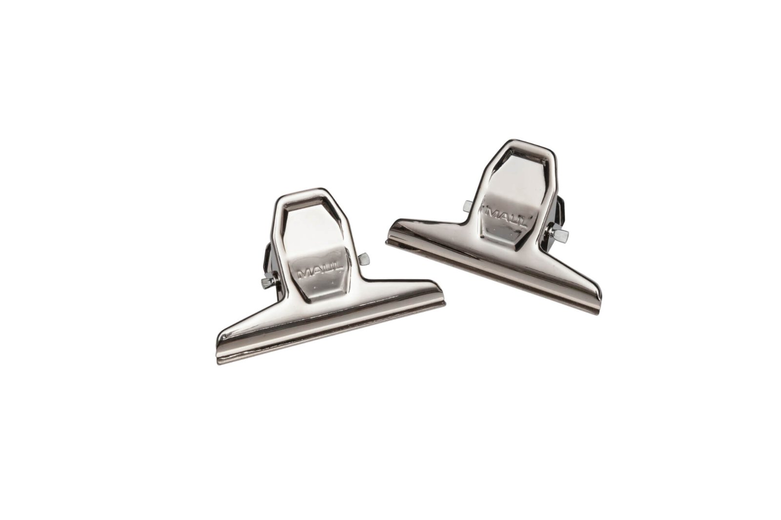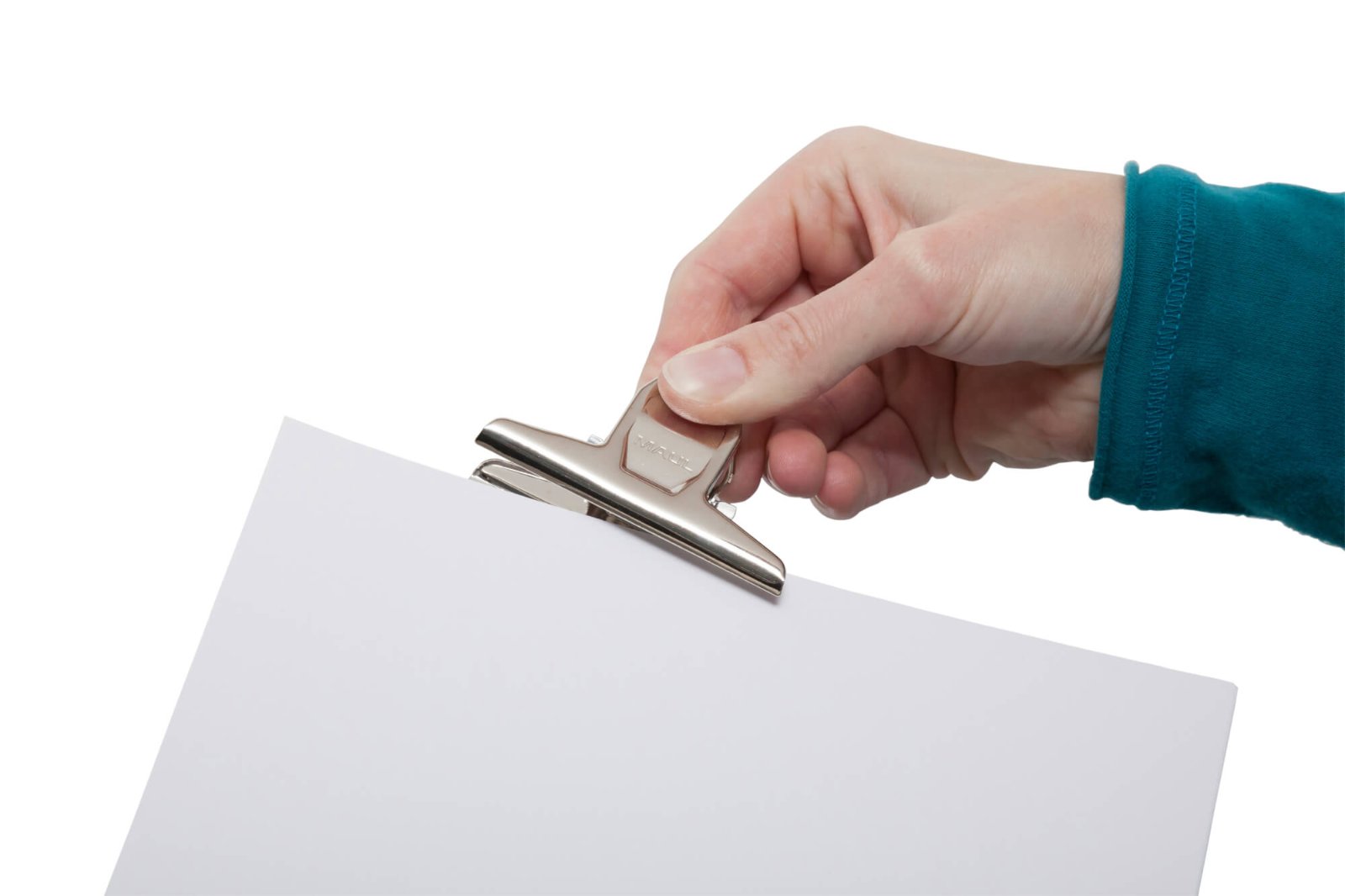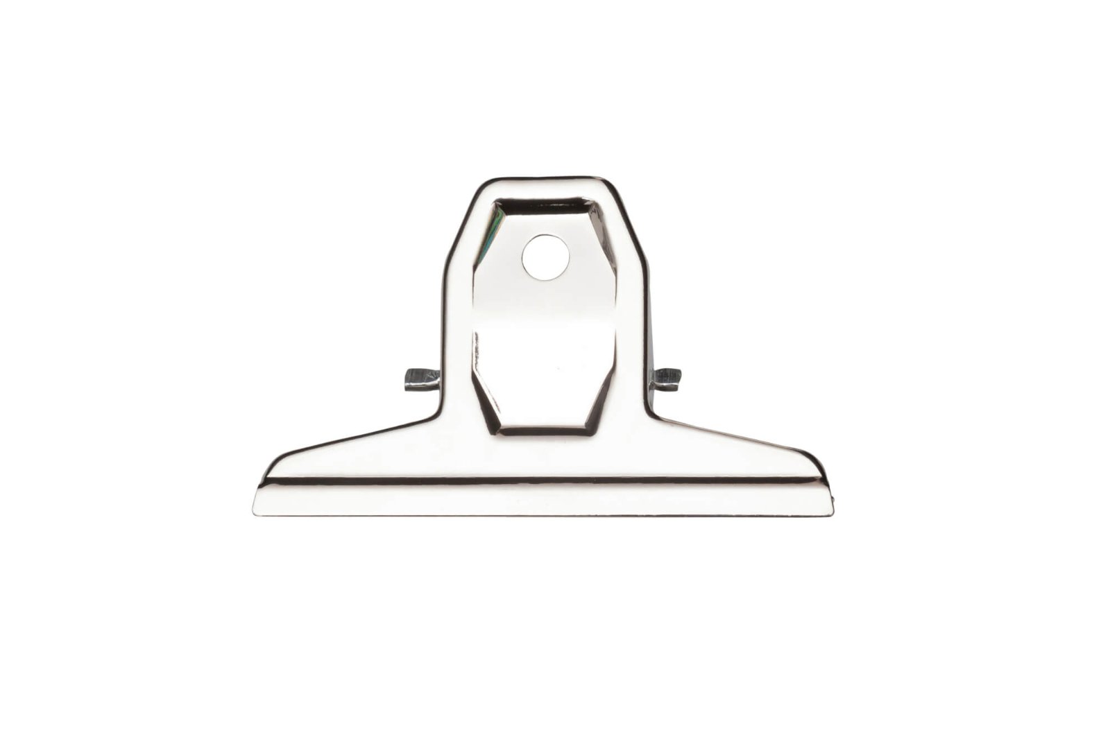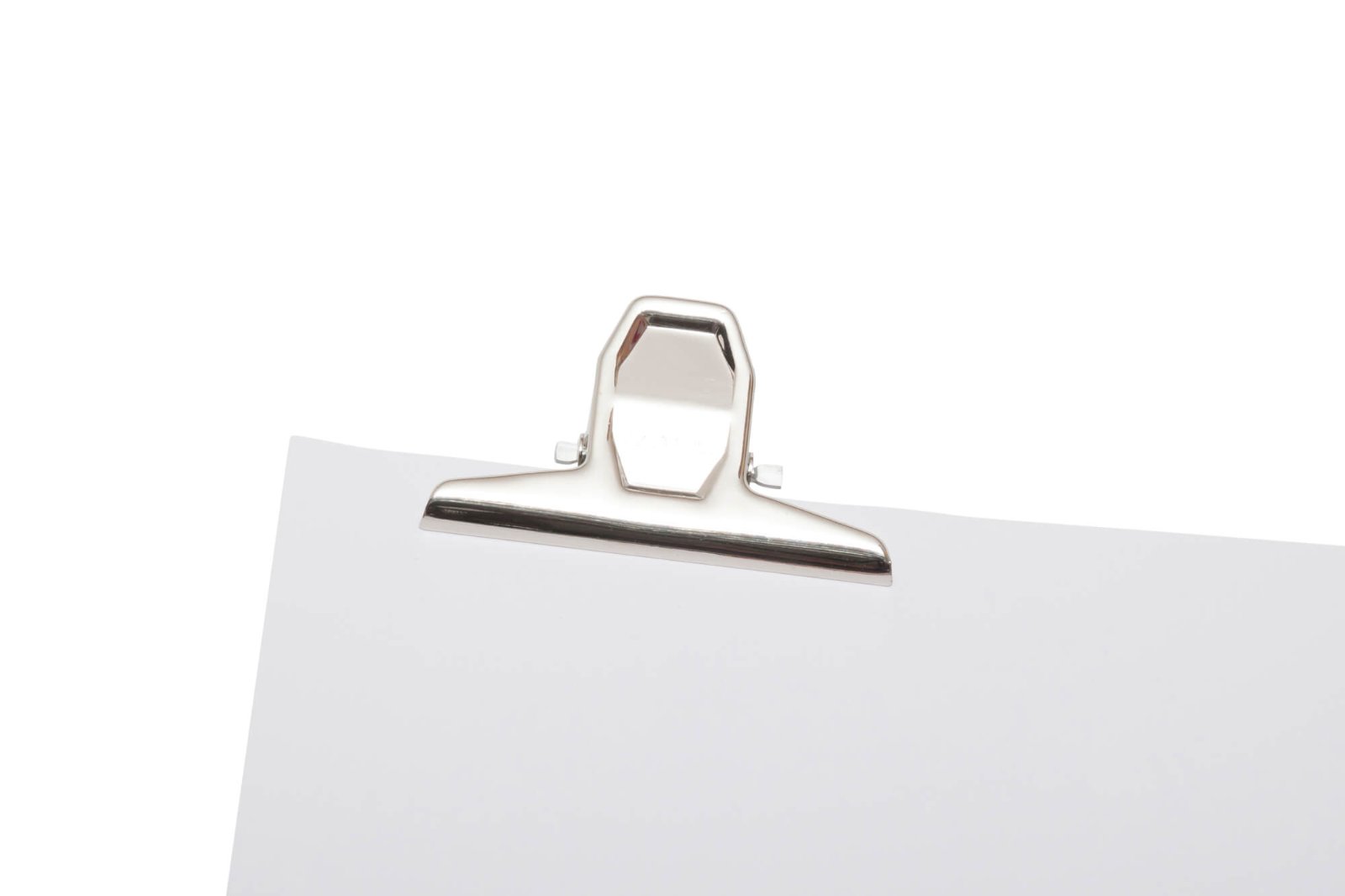 These include universal clipboard mechanisms, also known as archival paper clips (for documents). Small clamps for clipboards with spring mechanisms vary in their design. There are flat clips for attaching to surfaces (e.g., walls or clipboards), which securely hold sheets of paper. Popular options also include "bulldog" clips that bind stacks of notes, files, banknotes, and other documents, which are also useful for sealing an open package or bag to secure its contents. Clamps and office clips make it easy to manage documents, streamlining workflow. A clipboard mechanism ensures a strong attachment of documents to the board, allowing for convenient use outside the office.