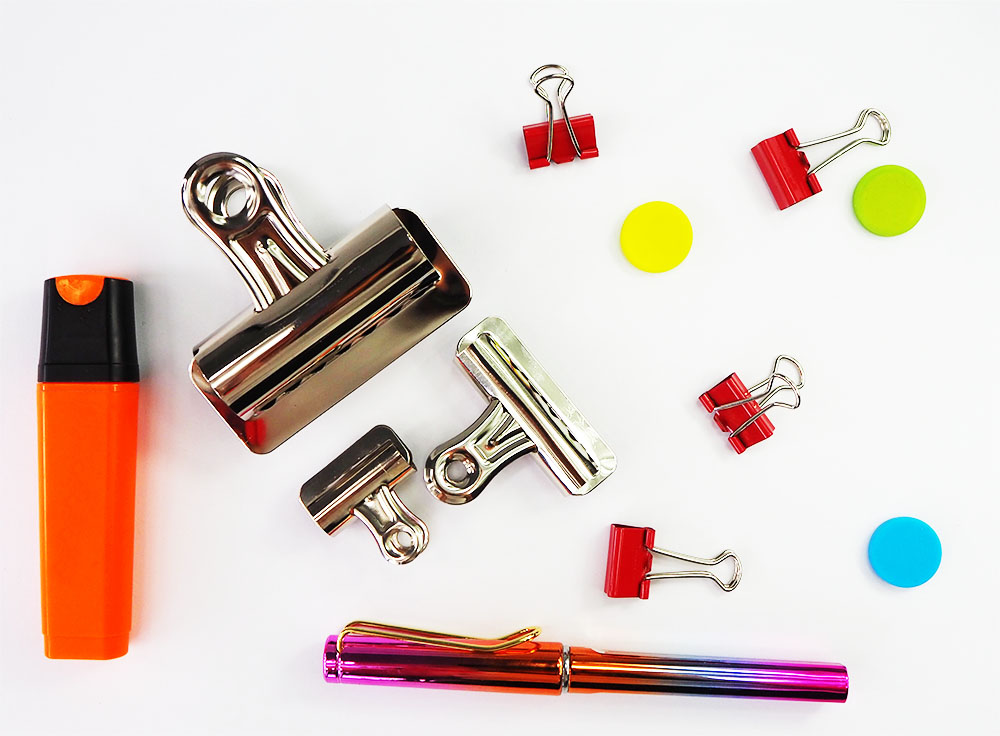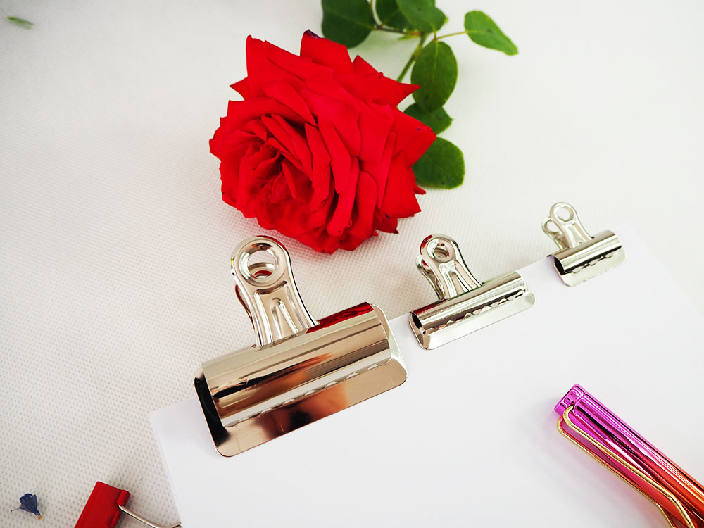 These include universal clipboard mechanisms, also known as archival paper clips (for documents). Small clamps for clipboards with spring mechanisms vary in their design. There are flat clips for attaching to surfaces (e.g., walls or clipboards), which securely hold sheets of paper. Popular options also include "bulldog" clips that bind stacks of notes, files, banknotes, and other documents, which are also useful for sealing an open package or bag to secure its contents. Clamps and office clips make it easy to manage documents, streamlining workflow. A clipboard mechanism ensures a strong attachment of documents to the board, allowing for convenient use outside the office.