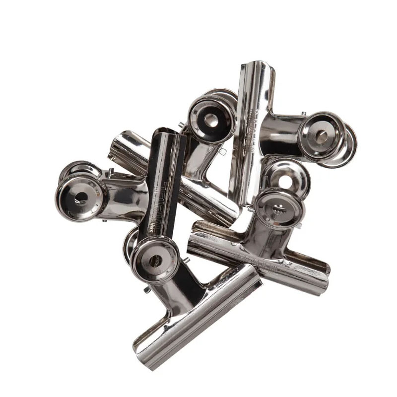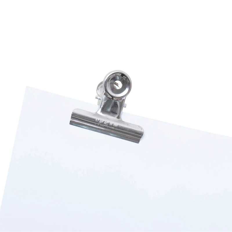 These include universal clipboard mechanisms, also known as archival paper clips (for documents). Small clamps for clipboards with spring mechanisms vary in their design. There are flat clips for attaching to surfaces (e.g., walls or clipboards), which securely hold sheets of paper. Popular options also include "bulldog" clips that bind stacks of notes, files, banknotes, and other documents, which are also useful for sealing an open package or bag to secure its contents. Clamps and office clips make it easy to manage documents, streamlining workflow. A clipboard mechanism ensures a strong attachment of documents to the board, allowing for convenient use outside the office.