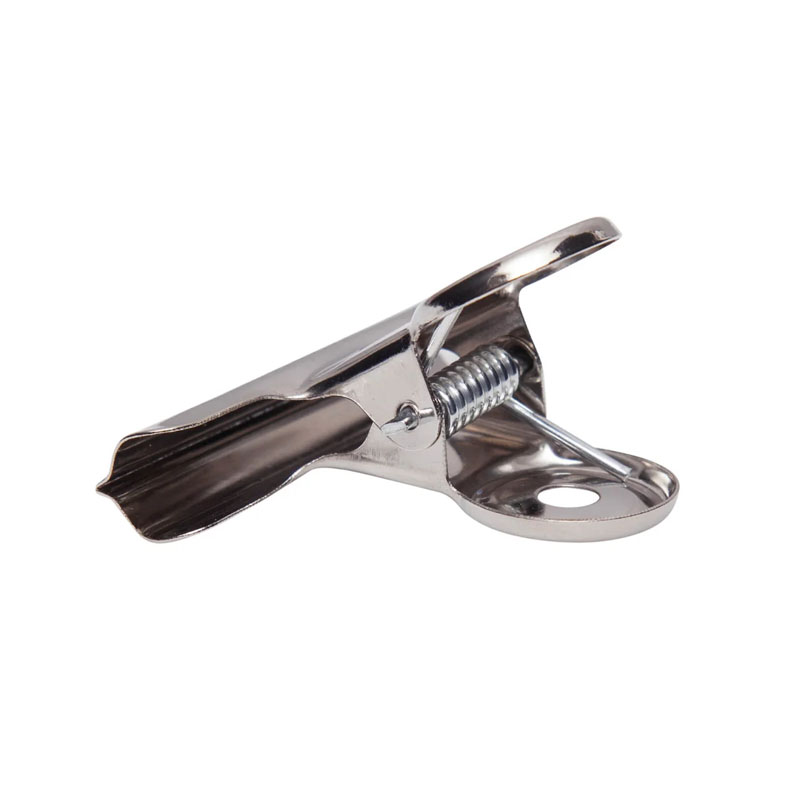 -  nicklled metal clamp and spring