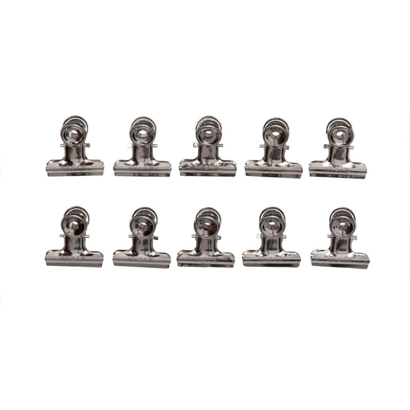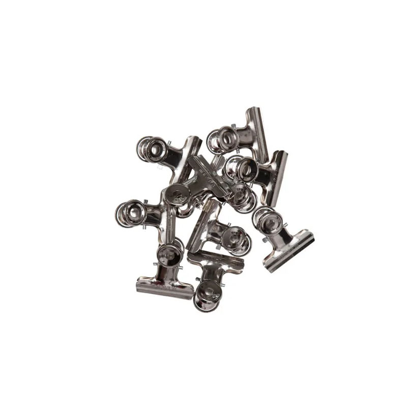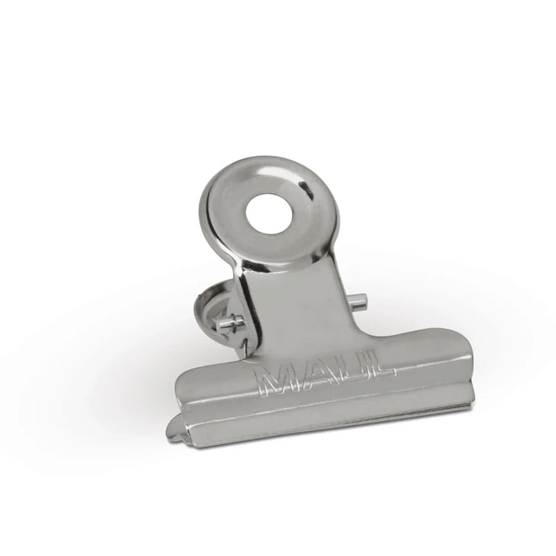 These include universal clipboard mechanisms, also known as archival paper clips (for documents). Small clamps for clipboards with spring mechanisms vary in their design. There are flat clips for attaching to surfaces (e.g., walls or clipboards), which securely hold sheets of paper. Popular options also include "bulldog" clips that bind stacks of notes, files, banknotes, and other documents, which are also useful for sealing an open package or bag to secure its contents. Clamps and office clips make it easy to manage documents, streamlining workflow. A clipboard mechanism ensures a strong attachment of documents to the board, allowing for convenient use outside the office.
