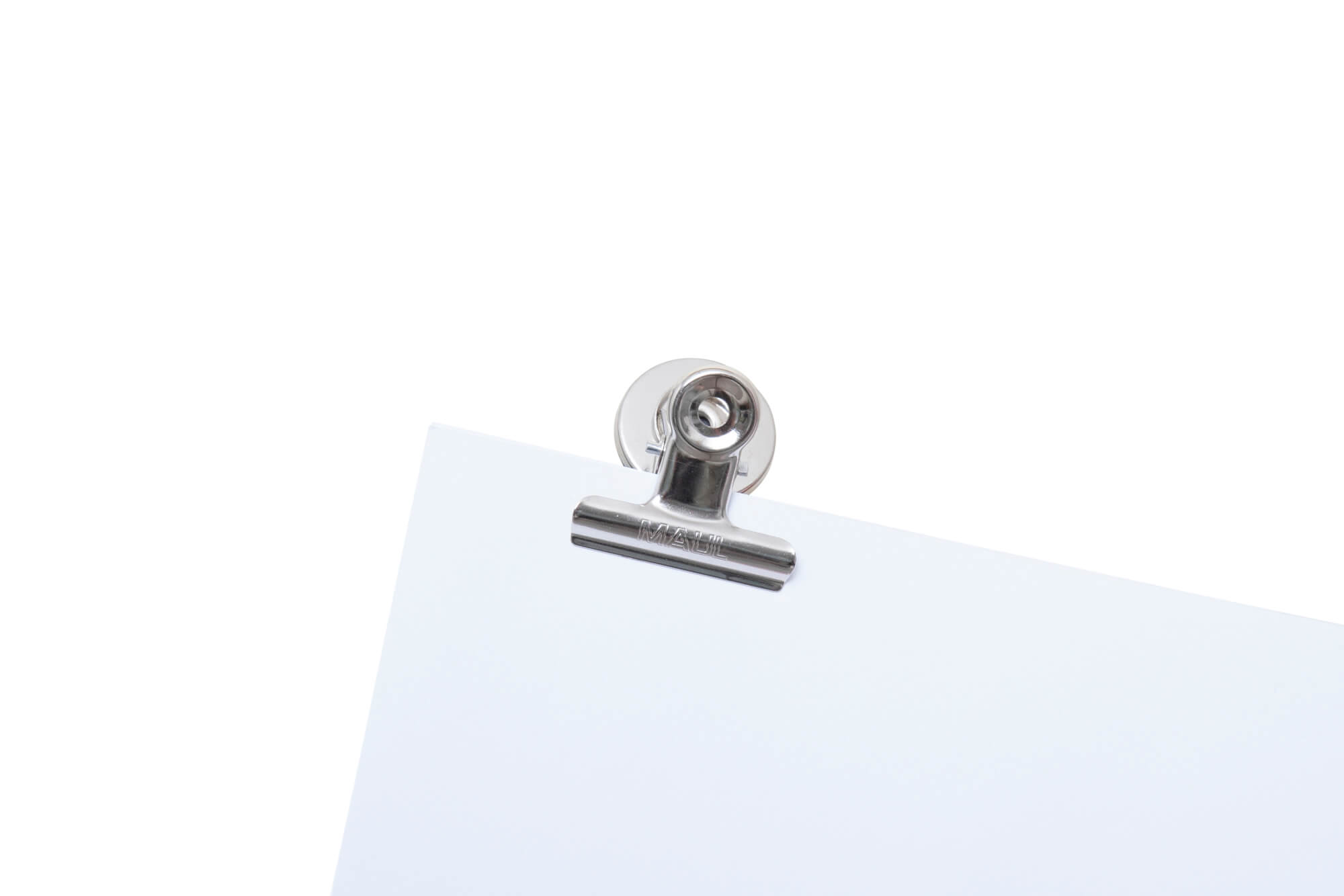 - Clip with magnet the underside of the clip for fixing information on whiteboards or to be used in production areas (many ferruginous surfaces available) - no drill holes due to magnetic fixing