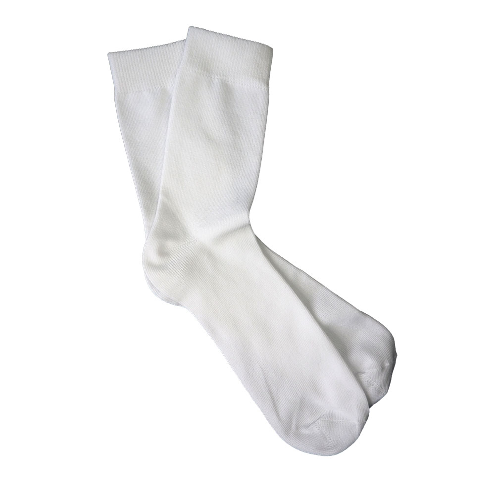 White, long socks for printing. Composition: 98% polyester and 2% elastane