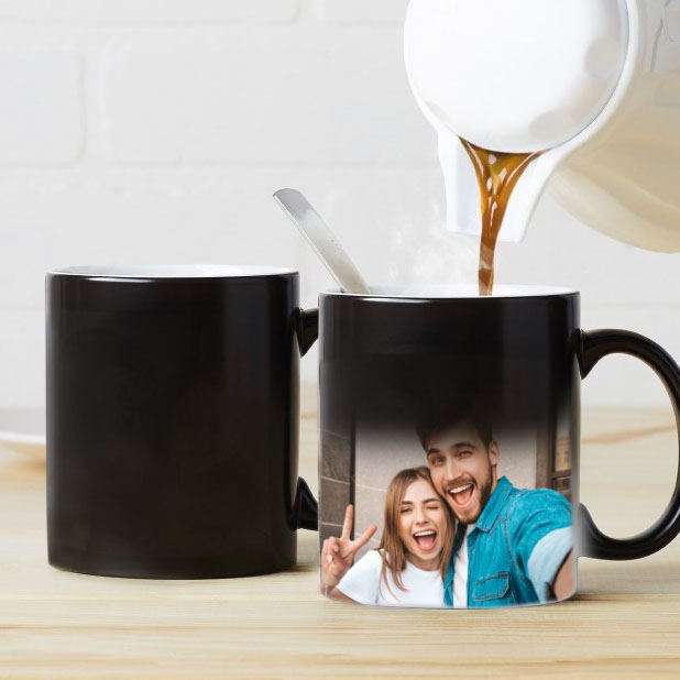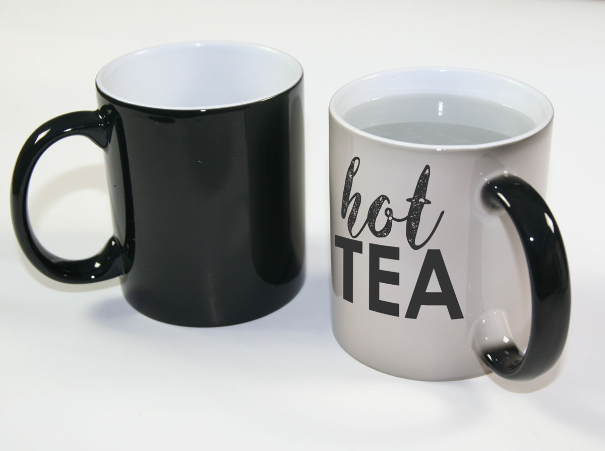 • The thermochromic mug features special properties that allow it to change color when exposed to heat.