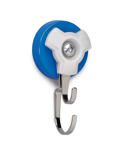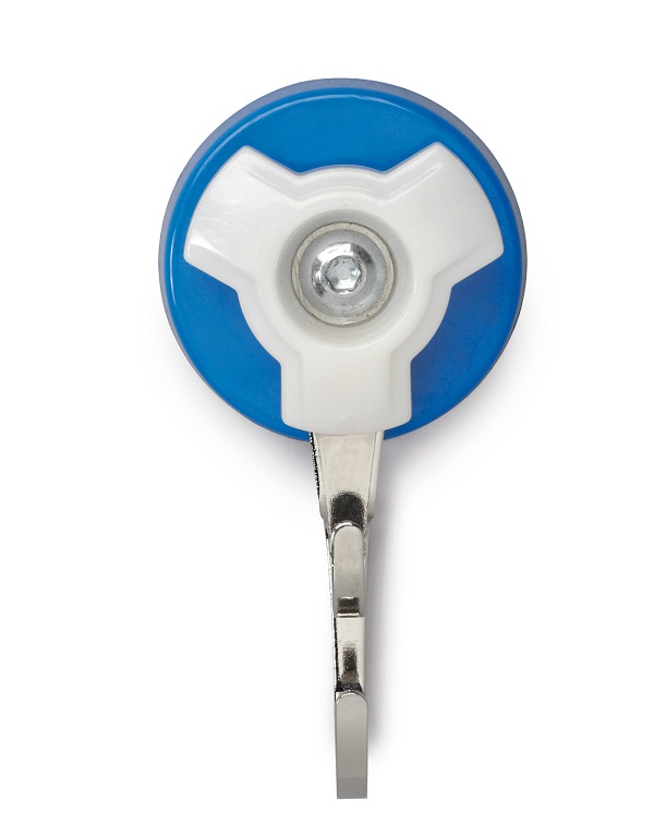 - The blue magnet with hooks has a durable, solid galvanized steel housing with a plastic coating